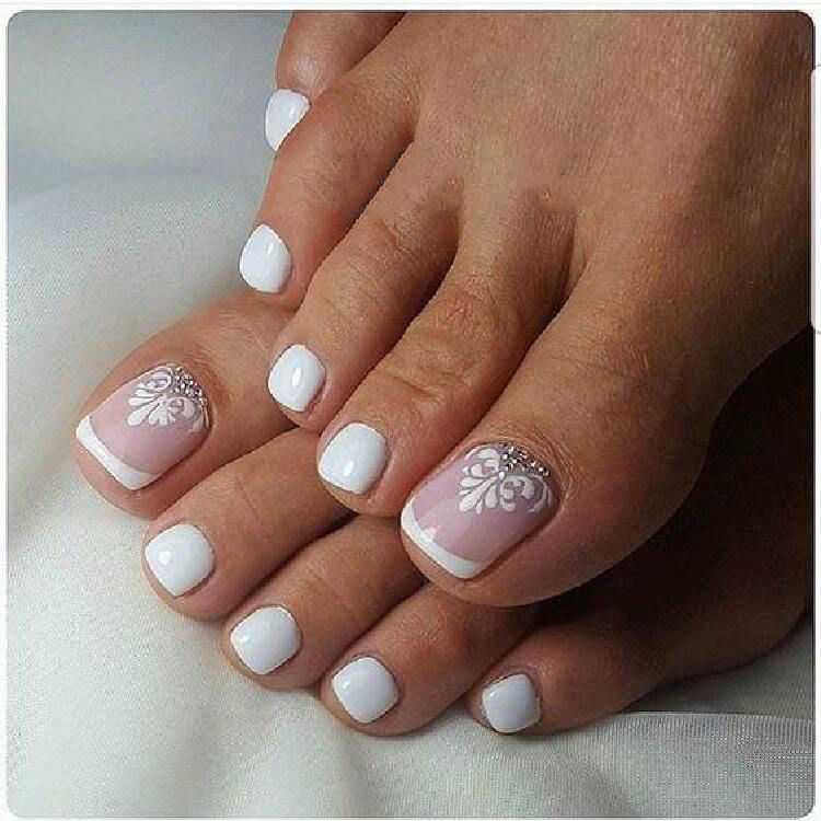Педикюр френч белый свадебный