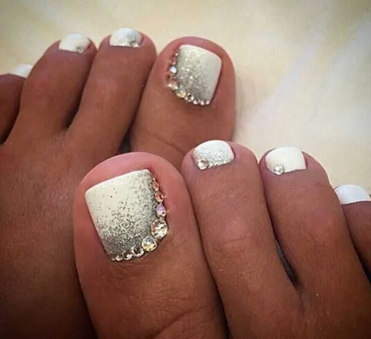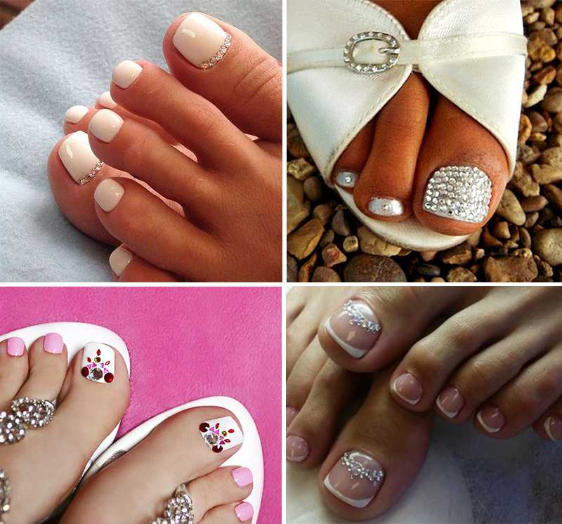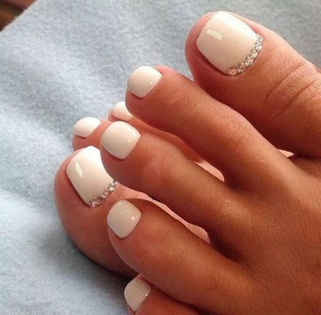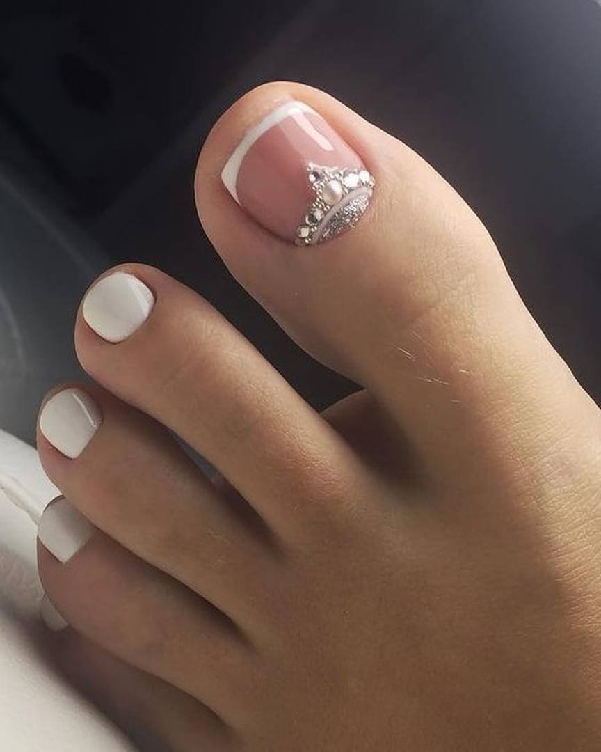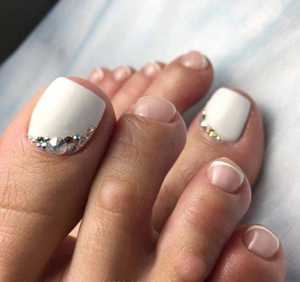 Педикюр белый лак со стразами