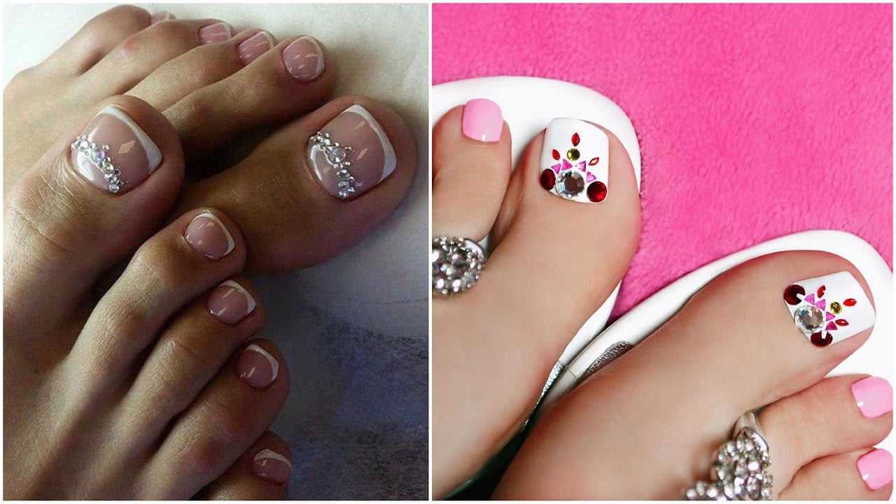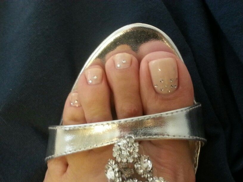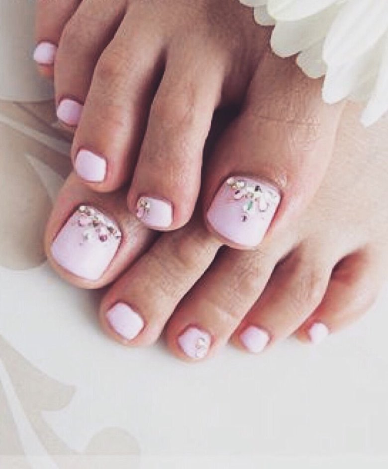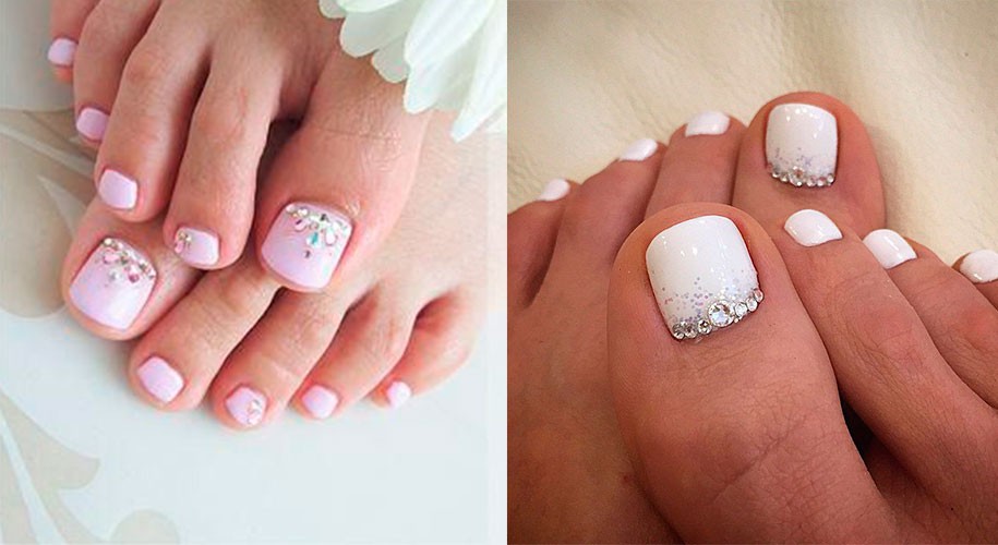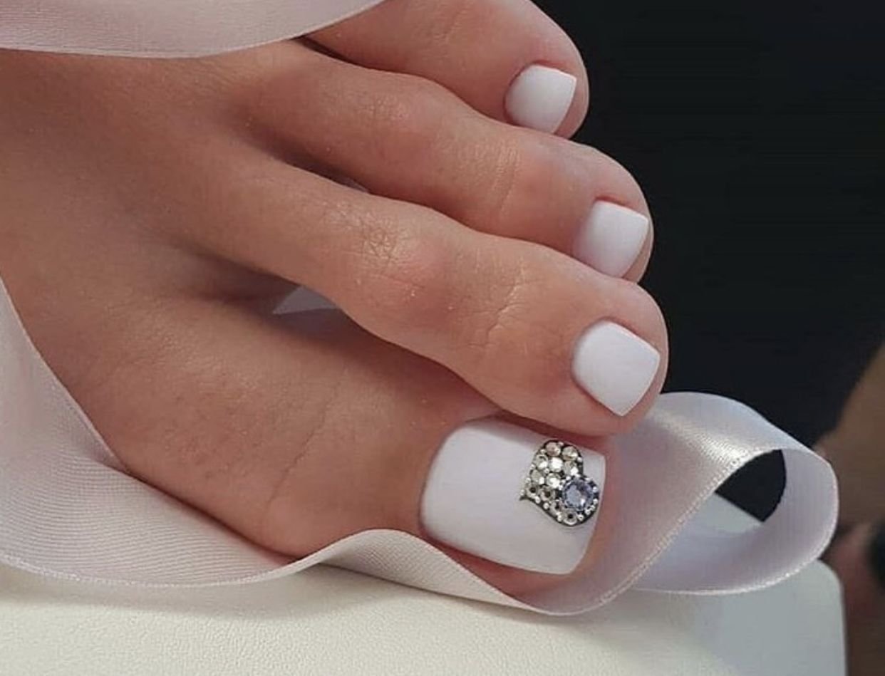 Педикюр белый лак со стразами