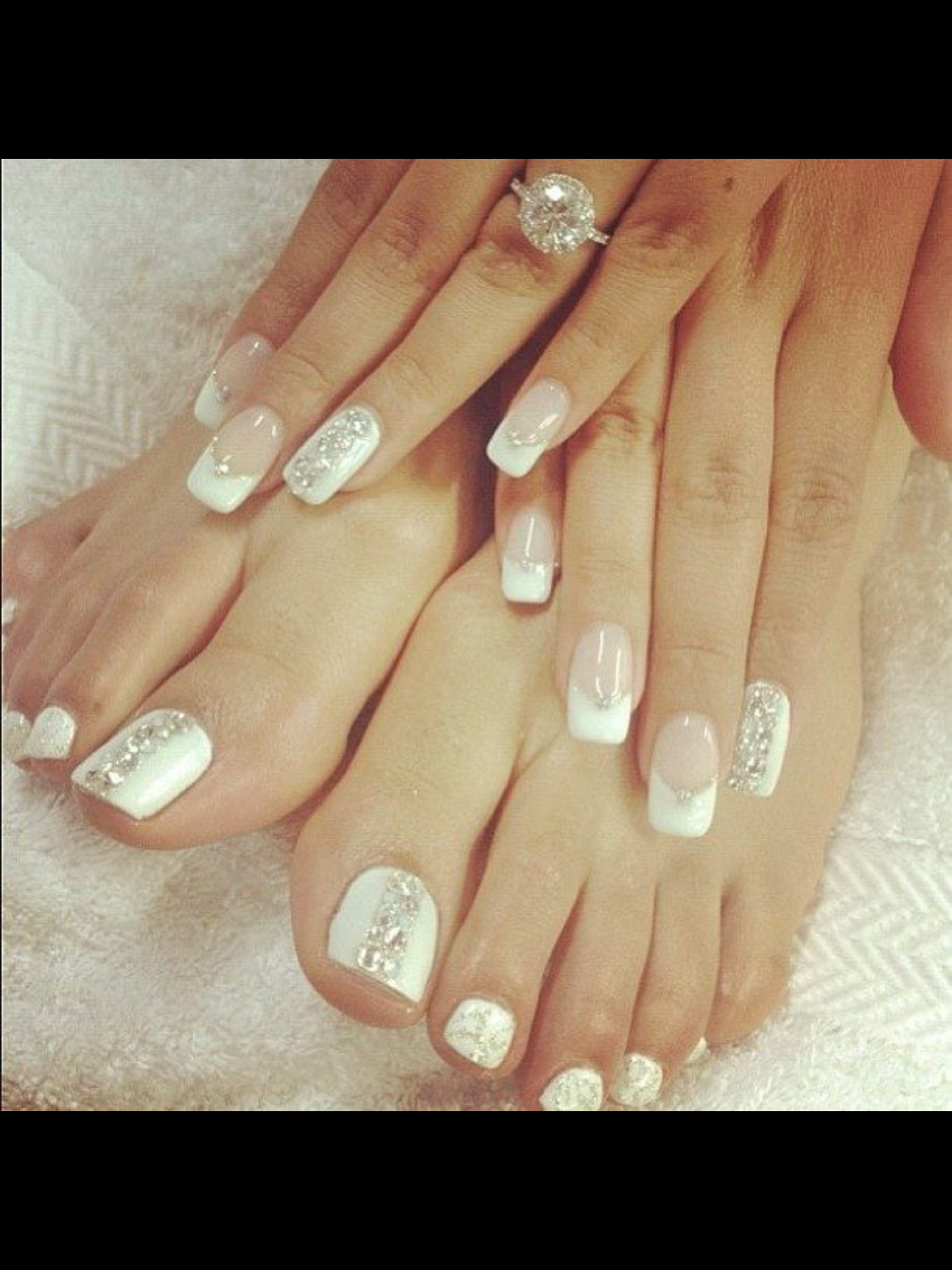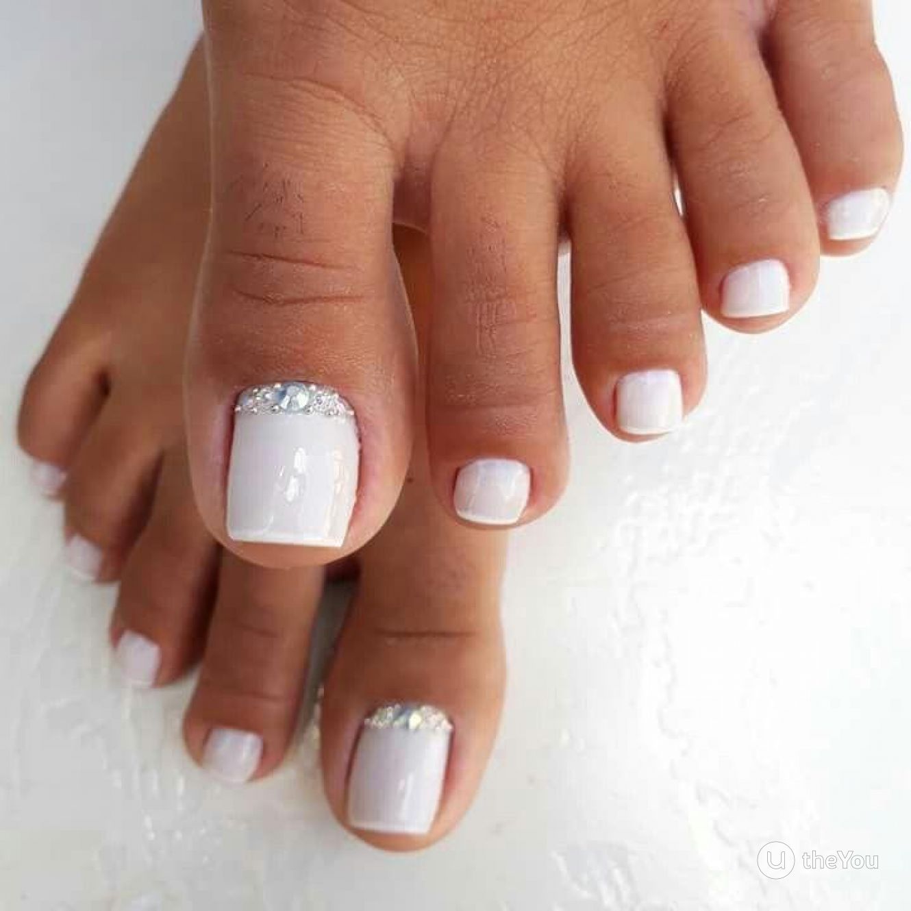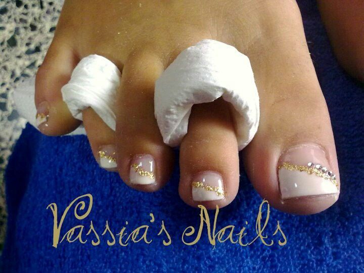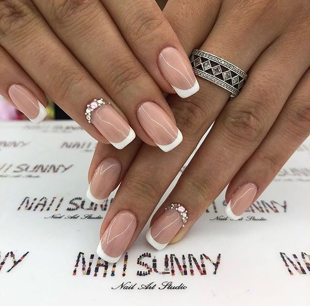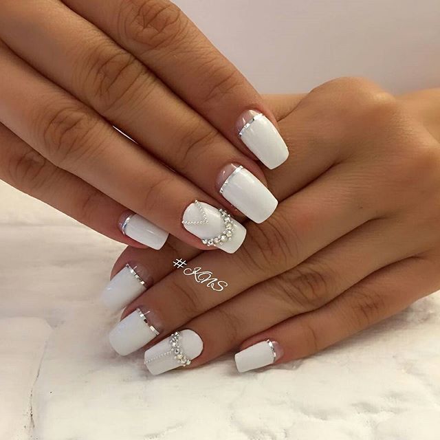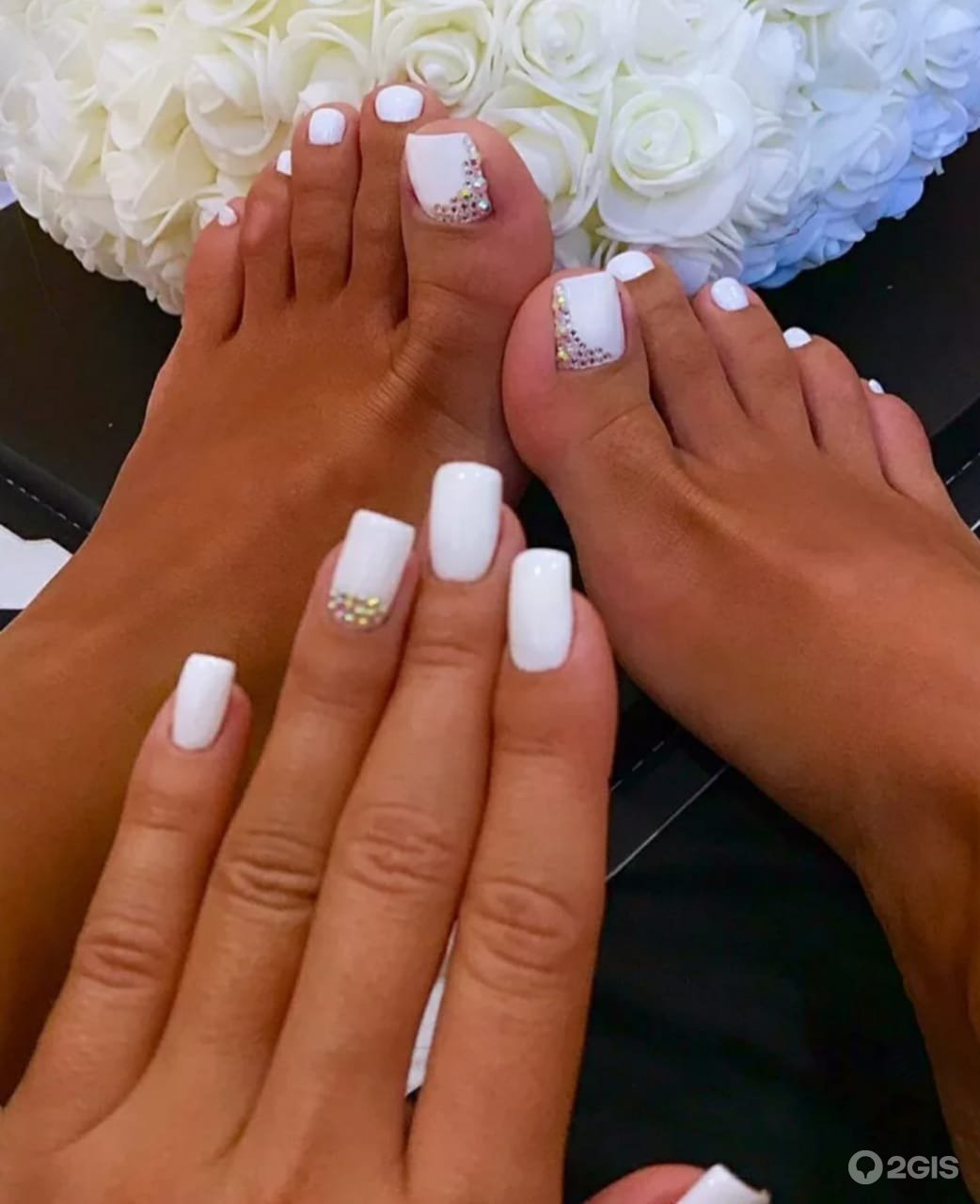 Педикюр белый лак со стразами