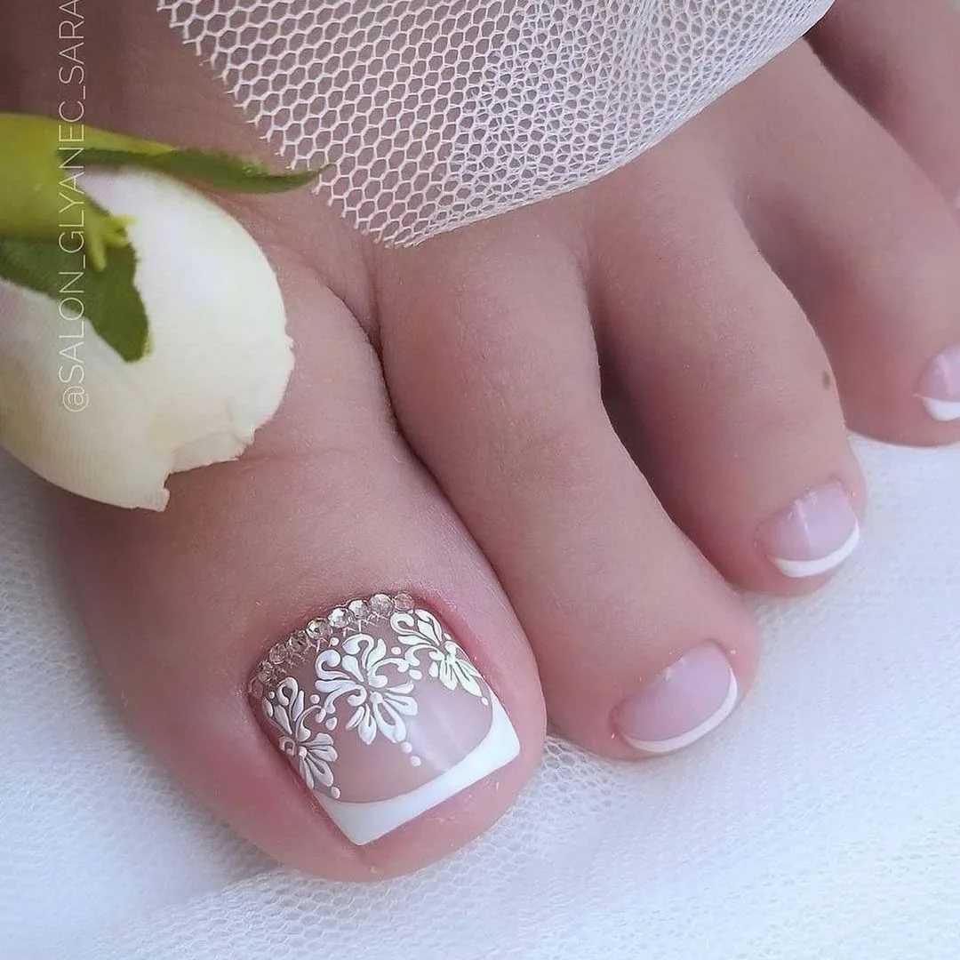 Белое кружево педикюр