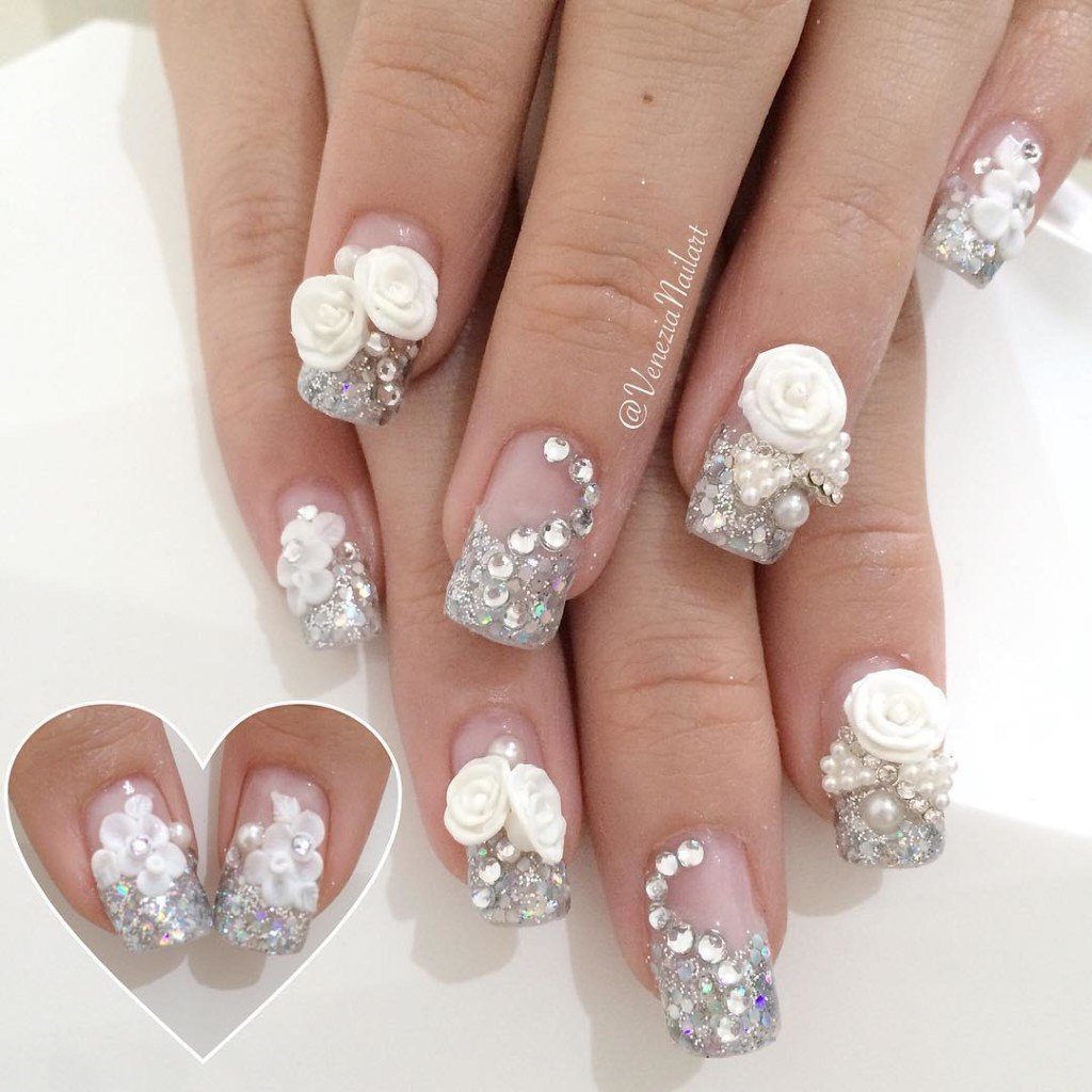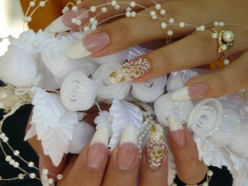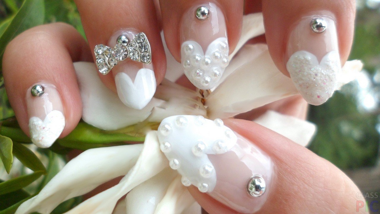 Лепка свадебный маникюр на ногтях