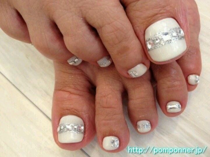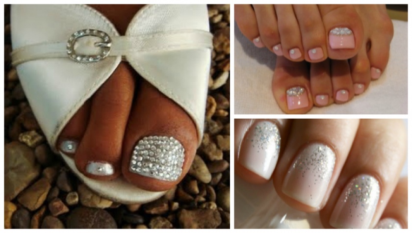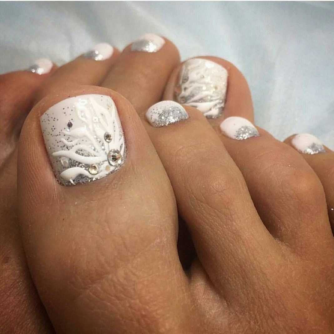 Свадебный педикюр белый с серебром