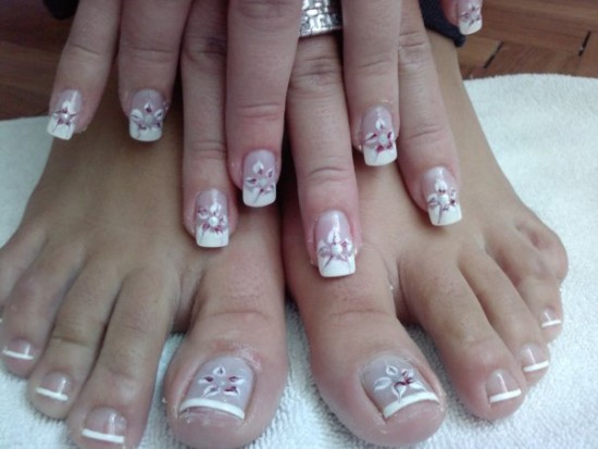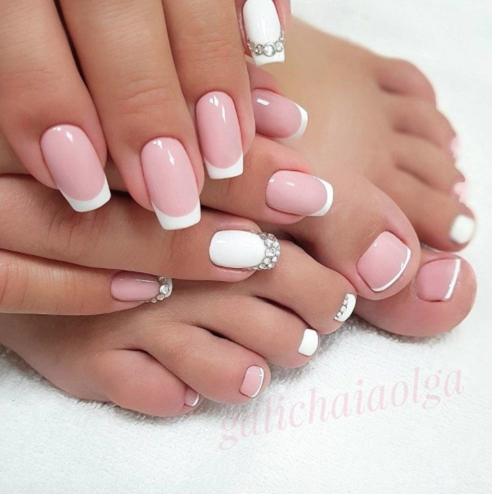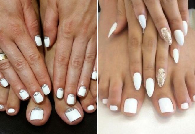 Белый маникюр и педикюр в одном стиле