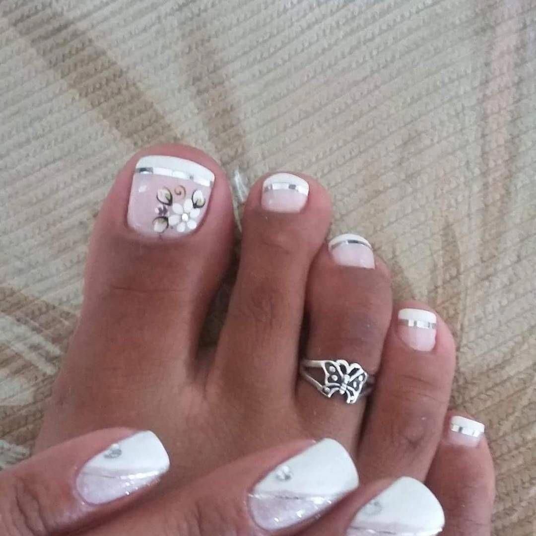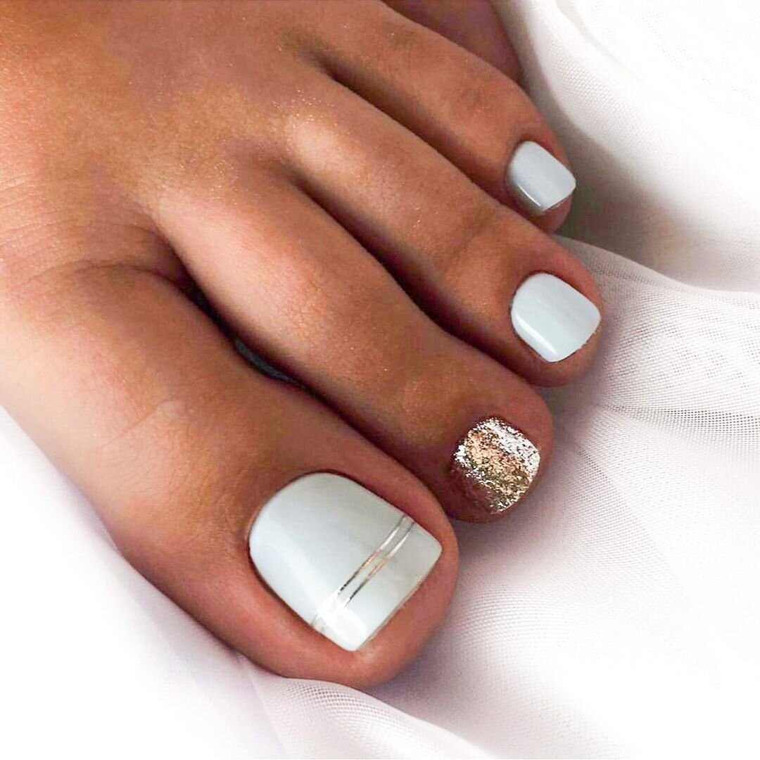 Педикюр белый с серебряной полоской
