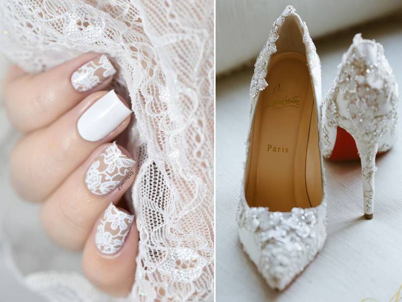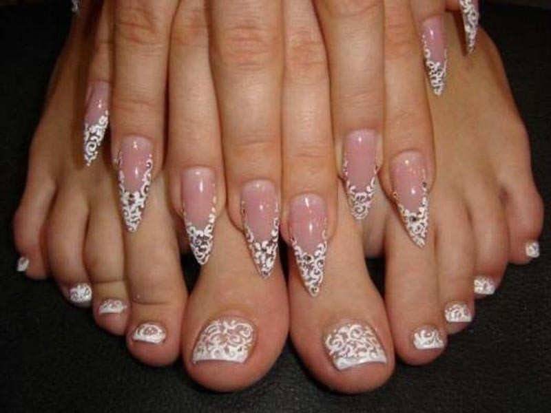 Свадебный маникюр и педикюр для невесты кружево